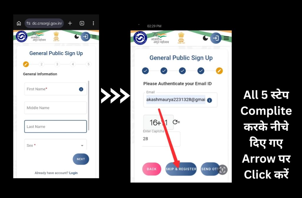 2. अपना मोबाइल नंबर और ई-मेल डालकर OTP से वेरिफ़ाई करें, और अपना रजिस्ट्रेशन पूरा करें ।